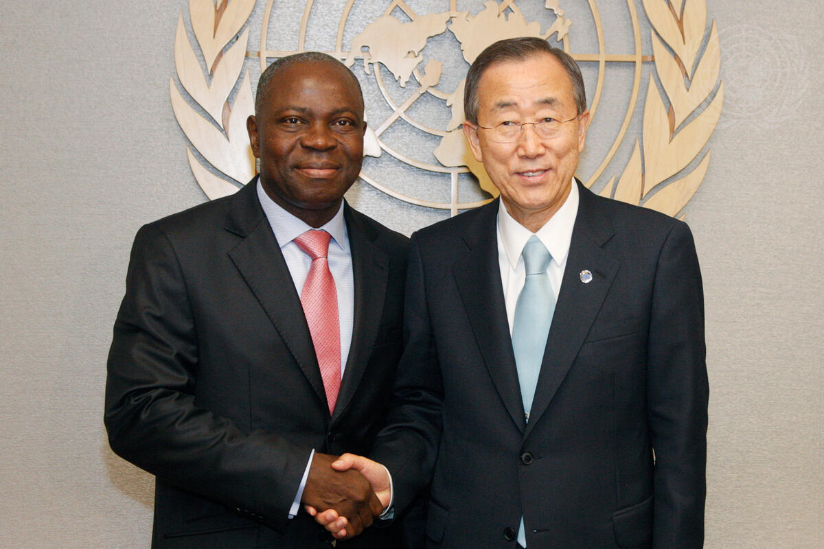 Secretary-General Ban Ki-moon (right) meets with Gilbert Fossoun Houngbo, Prime Minister of Togo.