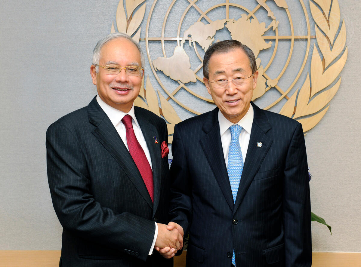 Secretary-General Ban Ki-moon (right) meets with Dato’ Sri Mohd Najib bin Tun Haji Abdul Razak, Prime Minister of Malaysia.