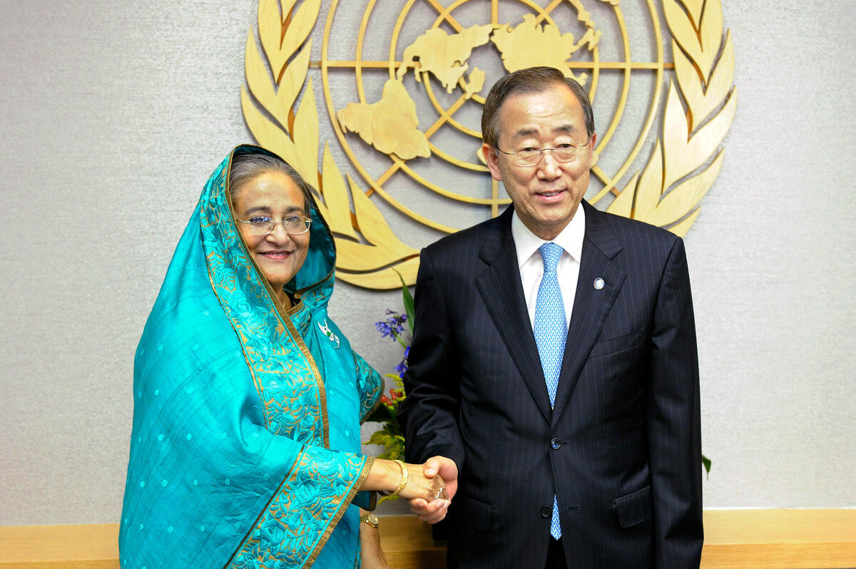 Secretary-General Ban Ki-moon (right) meets with Sheikh Hasina, Prime Minister of the People’s Republic of Bangladesh.