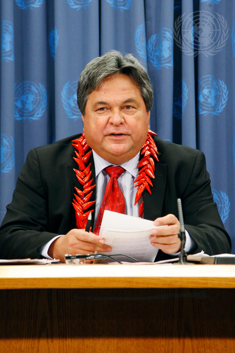 Misa Telefoni Retzlaff, Chairman of the Commission on AIDS in the Pacific and Deputy Prime Minister of the Independent State of Samoa, speaks at a press conference for the launch of the Commission's report.