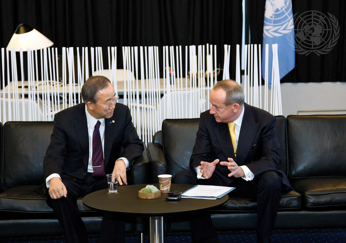 Secretary-General Ban Ki-moon (left) meets with Yvo de Boer, Executive Secretary of the United Nations Framework Convention on Climate Change (UNFCCC).