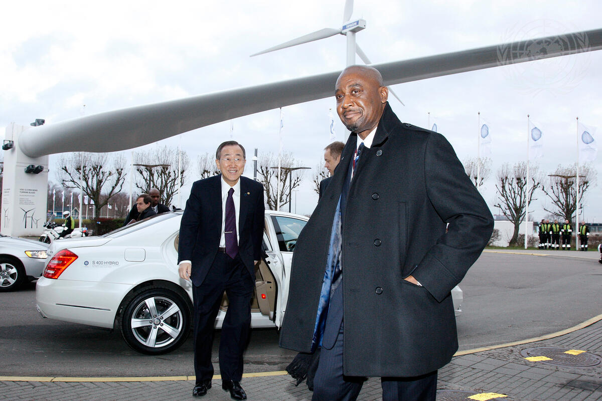 Secretary-General Ban Ki-moon (left) arrives at the Bella Centre in Copenhagen, where the 15th Conference of the Parties (COP15) to the United Nations Framework Convention on Climate Change is taking place.