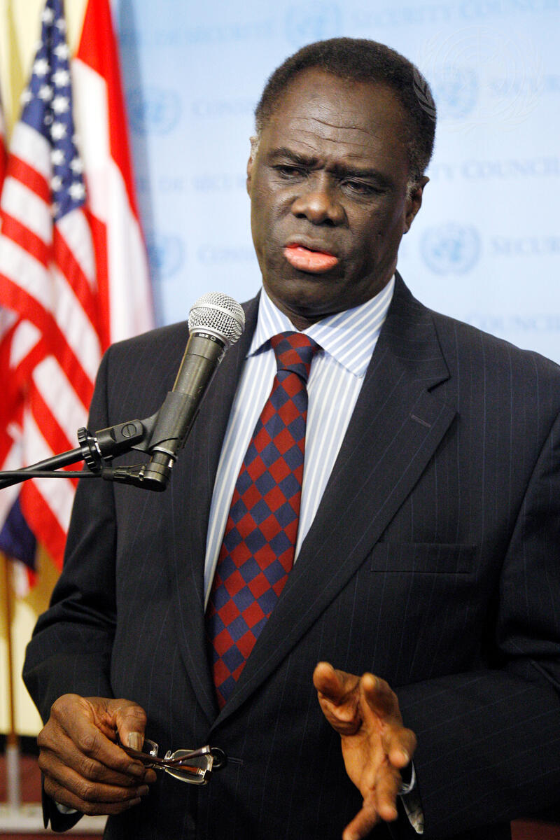 Michel Kafando, Permanent Representative of Burkina Faso to the United Nations and Security Council President for December, briefs the press following a Security Council meeting on Burundi. Mr. Kafando said Council members welcomed the progress made in Burundi's political and electoral process and stressed ""international support for the elections"" in that country.