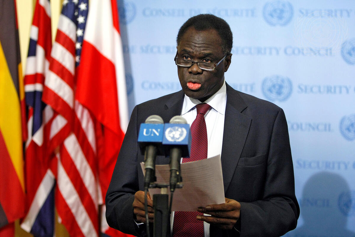 Michel Kafando, Permanent Representative of Burkina Faso to the United Nations and President of the Security Council for December, speaks to the press on behalf of the Council, condemning the 8 December car bombings in Baghdad.
