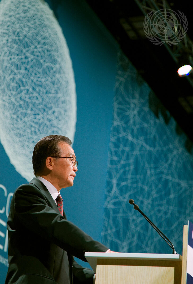 Wen Jiabao, Premier of the State Council of the People's Republic of China, addresses the high-level segment of the UN Climate Change Conference in Copenhagen on its last day.