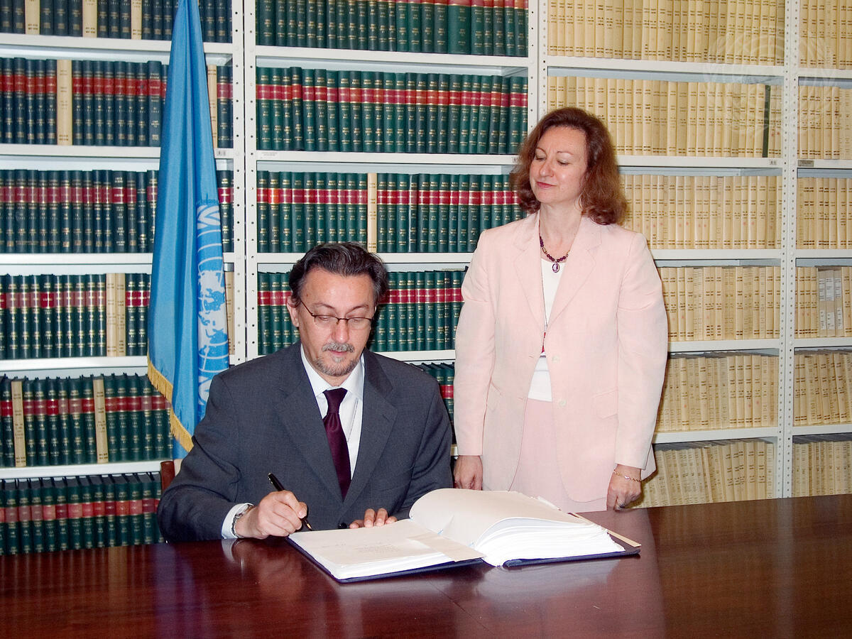 Ambassador Nebojsa Kaluderovic, Permanent Representative of Serbia and Montenegro, signs the World Health Organization Framework Convention on Tobacco Control.