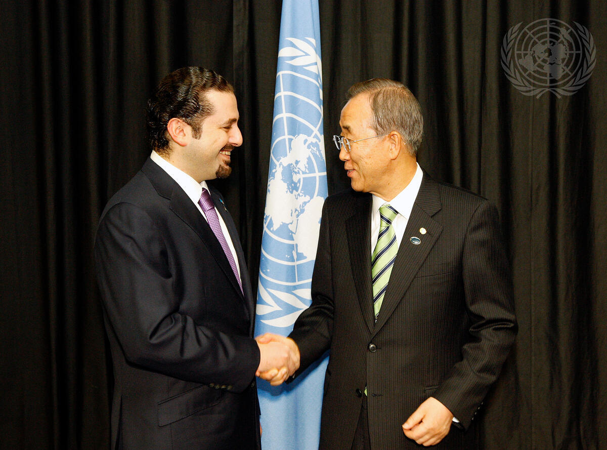 Secretary-General Ban Ki-moon (right) meets with Saad Hariri, Prime Minister of Lebanon, at the Bella Centre in Copenhagen, where the United Nations Climate Change Conference is taking place.