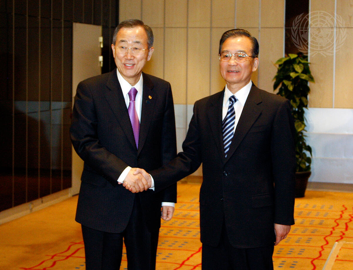 Secretary-General Ban Ki-moon (left) meets with Wen Jiabao, Premier of the State Council of the People's Republic of China, in Copenhagen, where the United Nations Climate Change Conference is taking place.