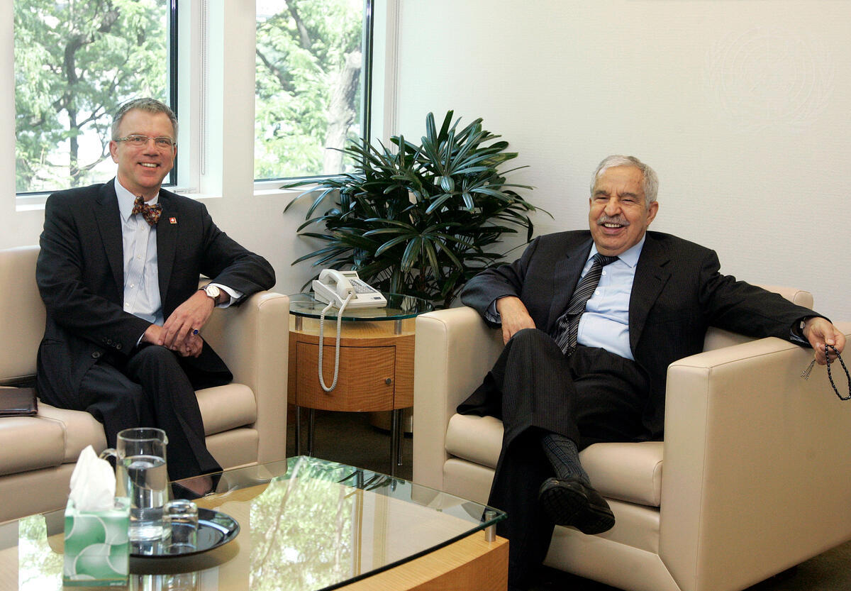 Ali Abdussalam Treki, President of the sixty-fourth session of the General Assembly, meets with Paul Seger, Permanent Representative of Switzerland to the United Nations.