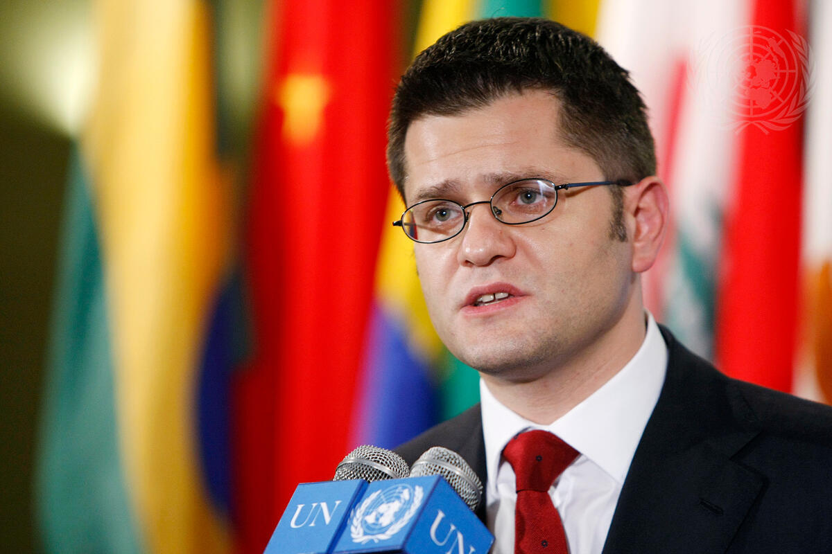 Vuk Jeremic, Minister for Foreign Affairs of the Republic of Serbia, briefs members of the press following a Security Council meeting on Kosovo. At the meeting Mr. Jeremic reiterated his country would not recognize a unilateral declaration of independence by Kosovo, despite a recently rendered advisory opinion by the International Court of Justice concluding Kosovo's declaration does not violate international law.