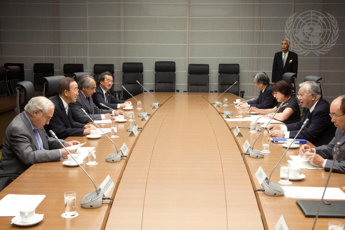Secretary-General Ban Ki-moon (second from left) meets with Hiromasa Yonekura (across from Mr. Ban), Chairman of the Japan Business Federation (Nippon Keidanren) and advocate for the Millennium Development Goals (MDGs), in Tokyo, Japan.