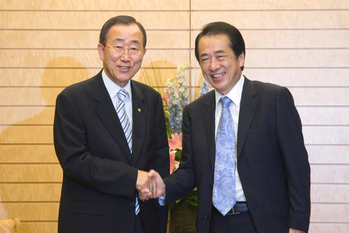 Secretary-General Ban Ki-moon (left) meets with Naoto Kan, Prime Minister of Japan, in Japanese capital, Tokyo.