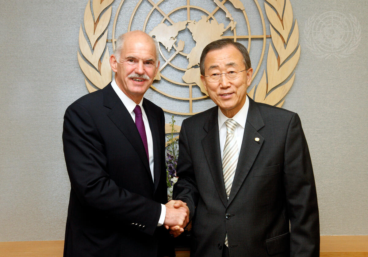 Secretary-General Ban Ki-moon (right) meets with George A. Papandreou, Prime Minister of Greece.