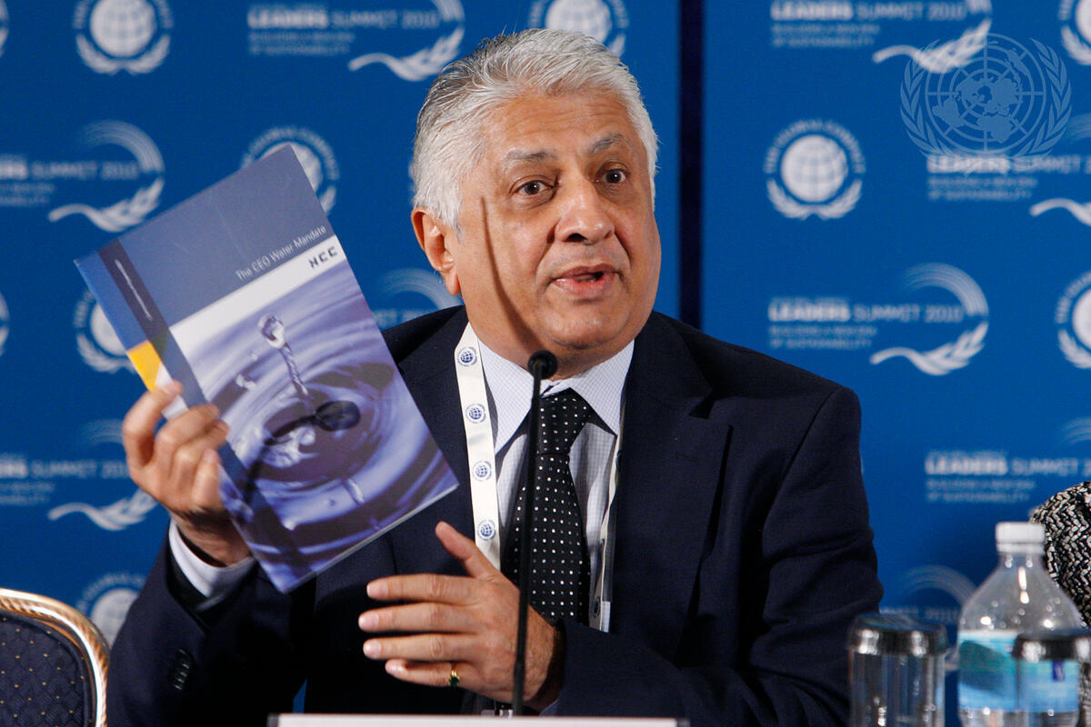 Ajit Gulabchand, Chairman and Managing Director of the Hindustan Construction Company (HCC), addresses the opening press conference of the UN Global Compact Leaders Summit 2010, at the Marriott Marquis Hotel in Times Square, New York.