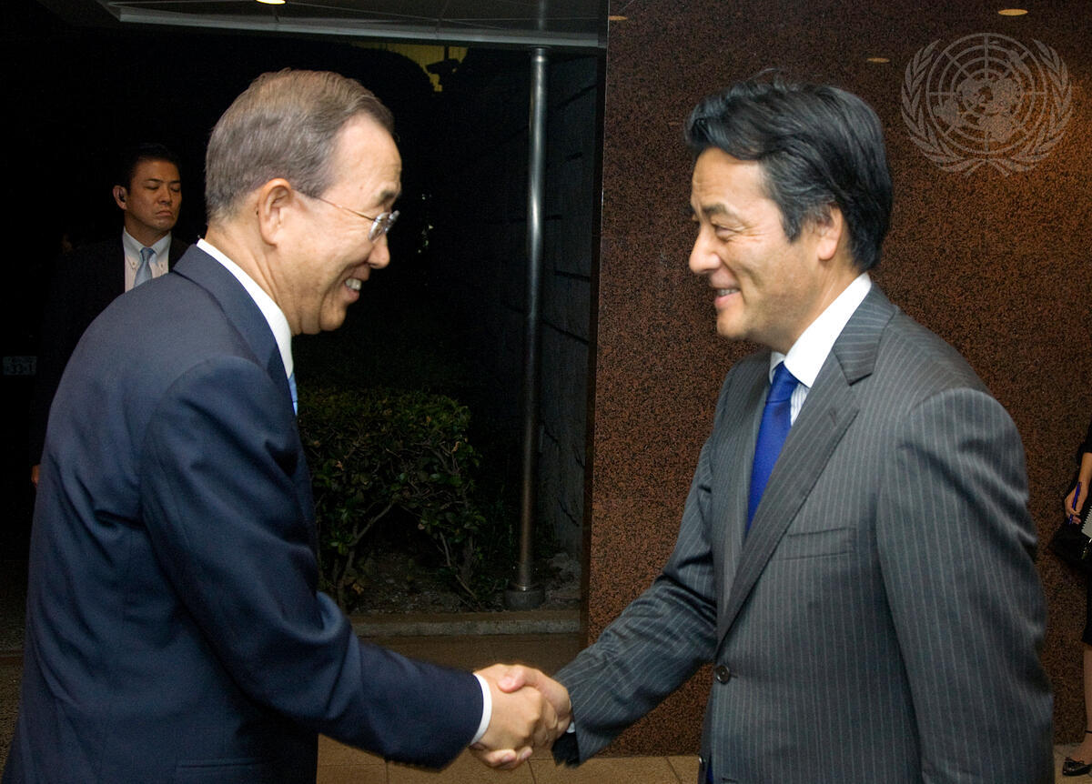 Secretary-General Ban Ki-moon (left) meets with Katsuya Okada, Minister for Foreign Affairs of Japan, in Japan's capital, Tokyo