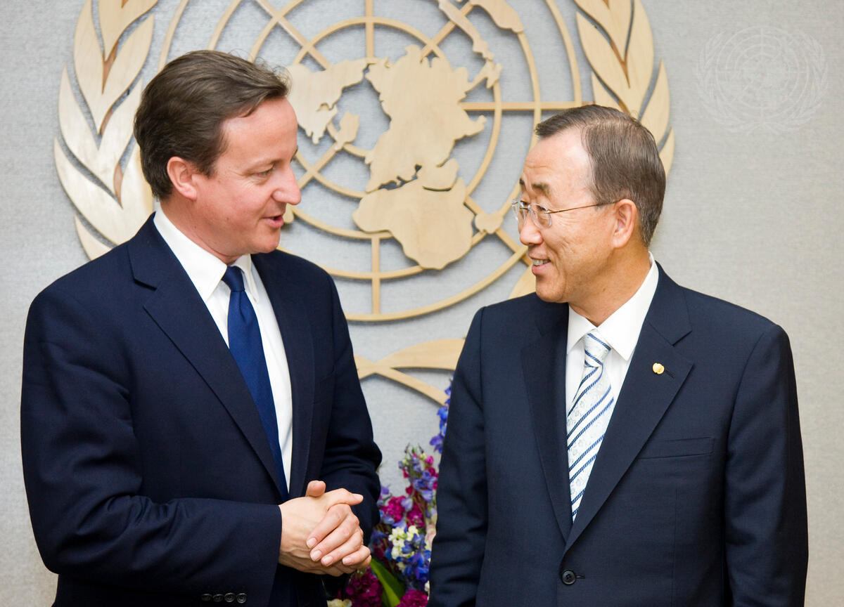 Secretary-General Ban Ki-moon (right) meets with David Cameron, Prime Minister of the United Kingdom.