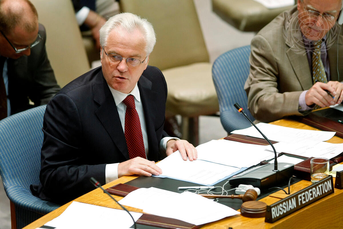 Vitaly I. Churkin, Permanent Representative of the Russian Federation to the UN and President of the Security Council for August, chairs the Council's meeting on Kosovo following an advisory opinion issued by the International Court of Justice (ICJ) that the region's February 2008 declaration of independence does not violate international law.