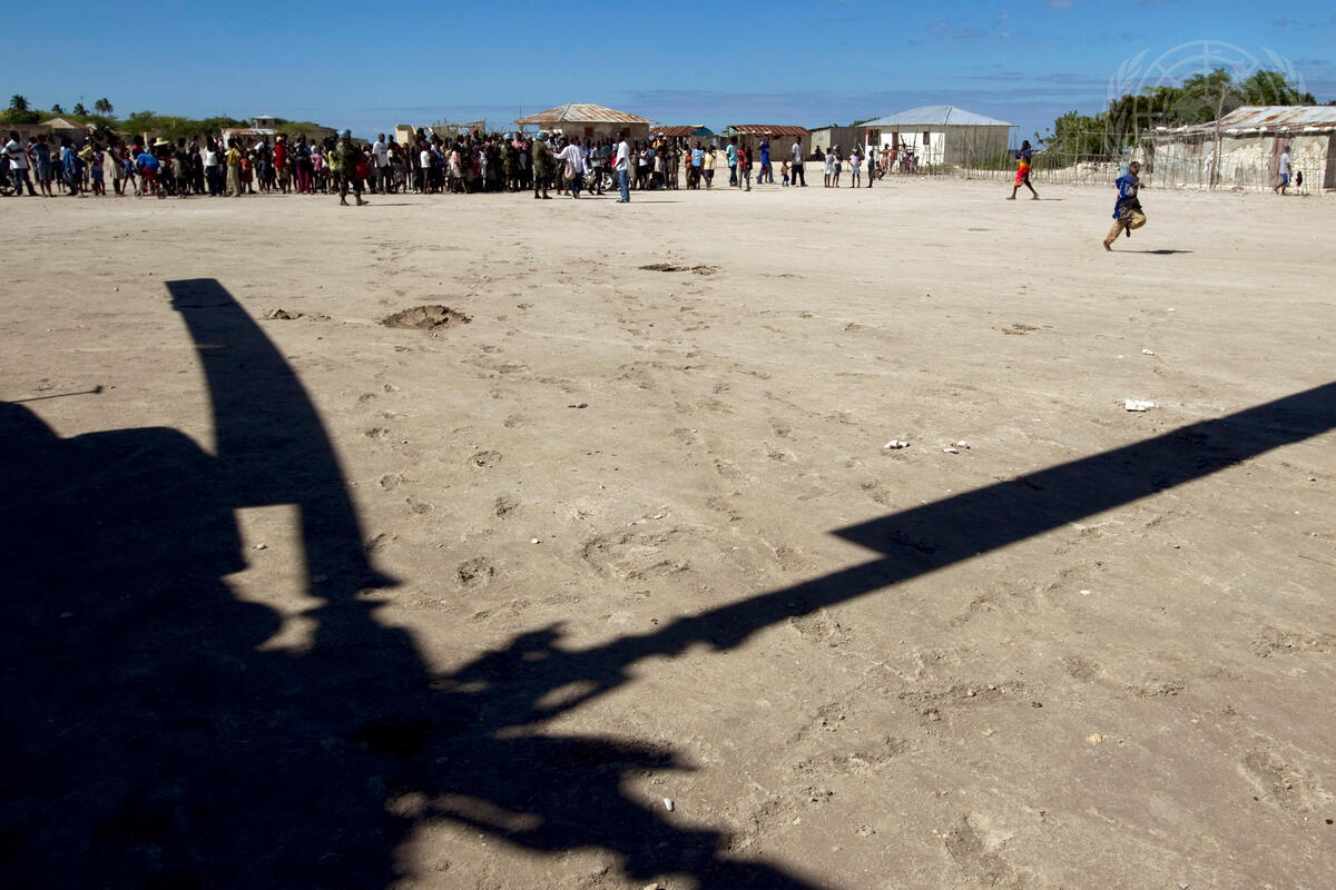 Caption Description People gather at the landing site of a UN helicopter as the United Nations Stabilization Mission in Haiti (MINUSTAH) staff aid in the delivery of electoral material to the island of La Gonâvee off the coast of Port-au-Prince, Haiti.