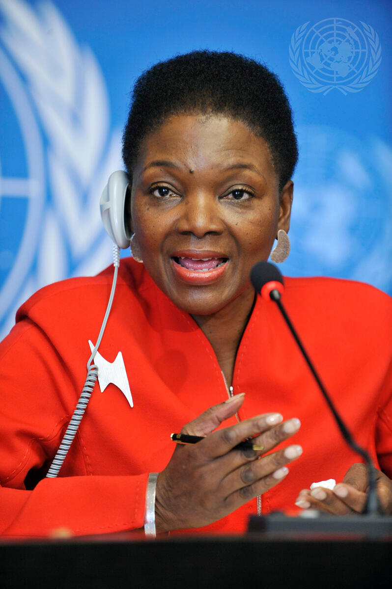 Valerie Amos, Under-Secretary-General for Humanitarian Affairs and Emergency Relief Coordinator, holds a press conference at the UN Office at Geneva, Switzerland.