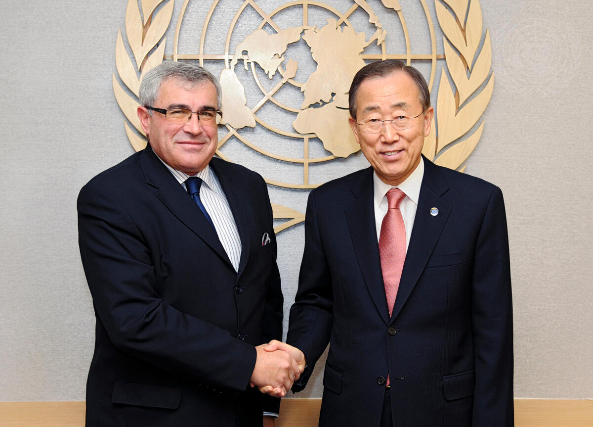 Secretary-General Ban Ki-moon (right) meets with Sven Alkalaj, Minister for Foreign Affairs of Bosnia and Herzegovina.