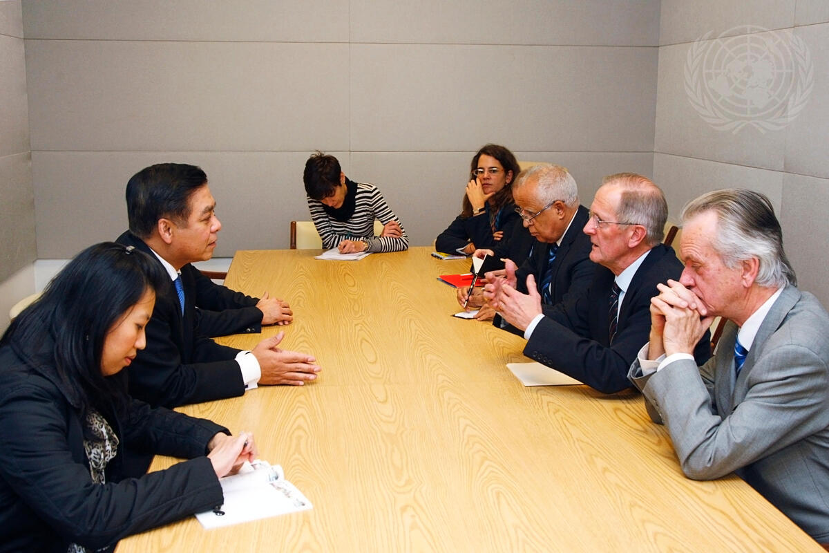 Joseph Deiss (second from right), President of the sixty-fifth session of the General Assembly, meets with Sihasak Phuangketkeon (second from left), President of the Human Rights Council (HRC), and Mohammed Loulichki (left of Mr. Deiss), Permanent Representative of Morocco to the UN and Co-facilitator of the consultations on the review of the status of the HRC.