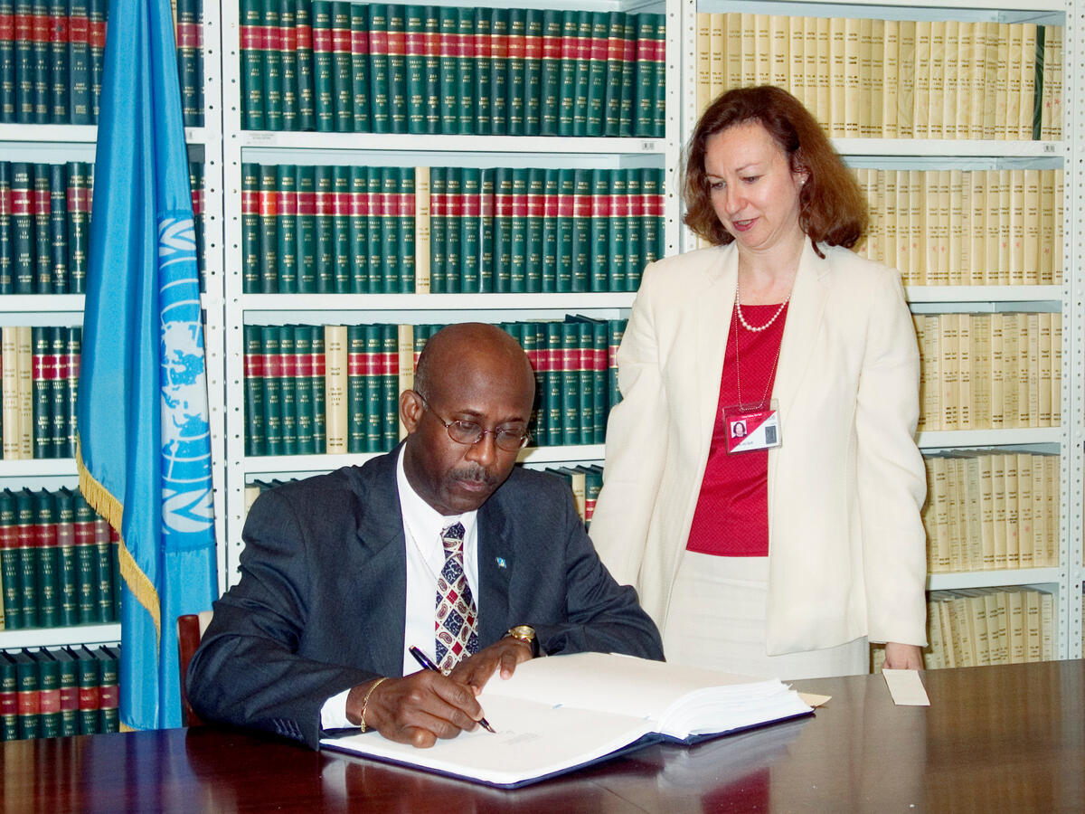 Ambassador Anthony Bryan Severin, Permanent Representative of Saint Lucia, signs the World Health Organization Framework Convention on Tobacco Control.