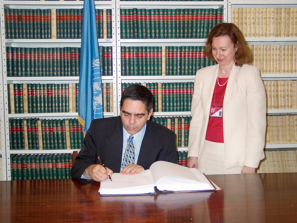 Ambassador Orlando Requeijo Gual, Permanent Representative of Cuba, signs the World Health Organization Framework Convention on Tobacco Control.