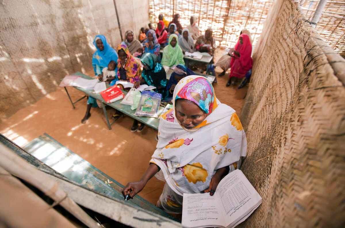 A view inside Abu Shouk Internally Displaced Persons (IDP) Camp's Women Center, in North Darfur, Sudan, where classes are offered in Arabic, the Koran and Mathematics. Approximately 80 women attend the classes, usually taking their children along with them.