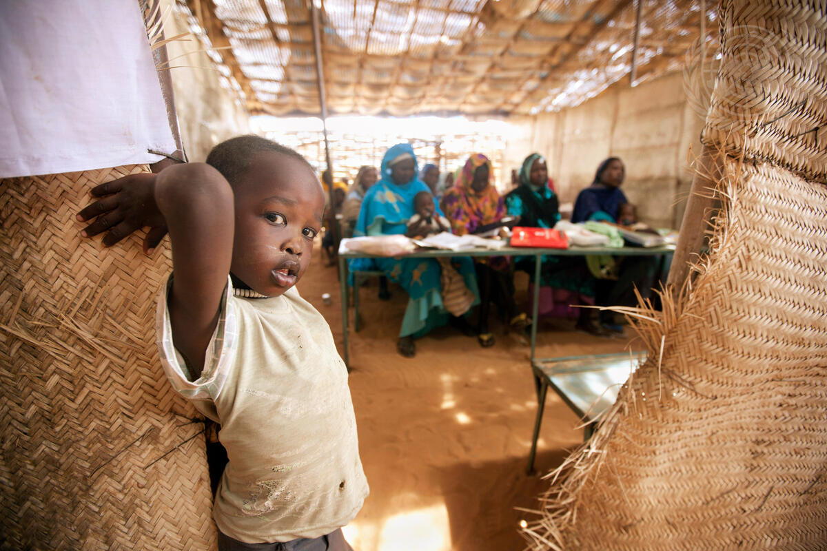 A child stands outside a classroom at the Abu Shouk Women Center, inside Abu Shouk’s internally displaced persons (IDP) camp in North Darfur, Sudan. The centre’s classes in Arabic, the Koran and Mathematics, are attended by approximately 80 women who often bring their children with them.