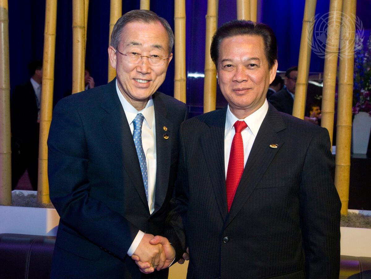 Secretary-General Ban Ki-moon (left) meets with Nguyen Tan Dung, Prime Minister of the Socialist Republic of Viet Nam, in Washington D.C., where the leaders attended the Nuclear Security Summit.