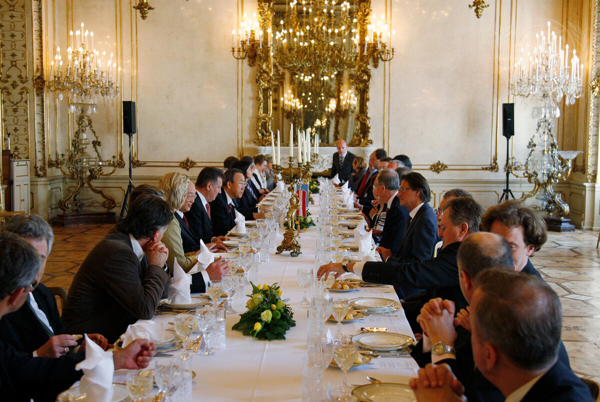Secretary-General Ban Ki-moon (eighth from left) attends a luncheon hosted by Barbara Prammer, President of the National Council (Austria's lower house of Parliament), in Vienna, Austria.