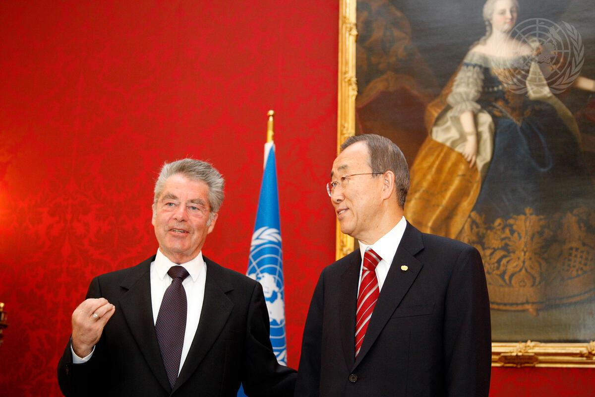 Secretary-General Ban Ki-moon (right) meets with Heinz Fischer, President of Austria, in Mr. Fischer's office in Vienna, Austria.