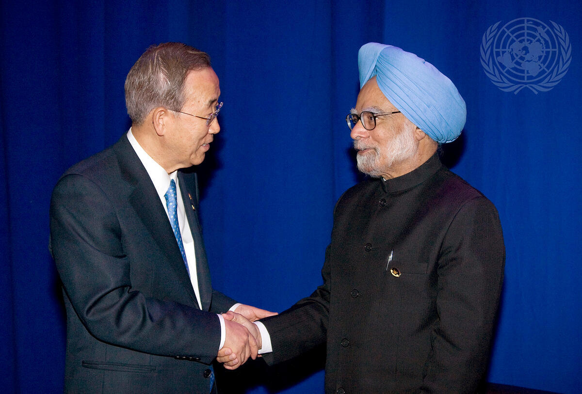 Secretary-General Ban Ki-moon (left) meets with Manmohan Singh, Prime Minister of India, at the Nuclear Security Summit in Washington D.C.