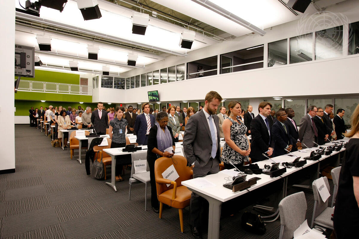 Guests at UN Headquarters' sixteenth commemoration of the International Day of Reflection on the 1994 Genocide in Rwanda observe a minute of silence for victims of the genocide.