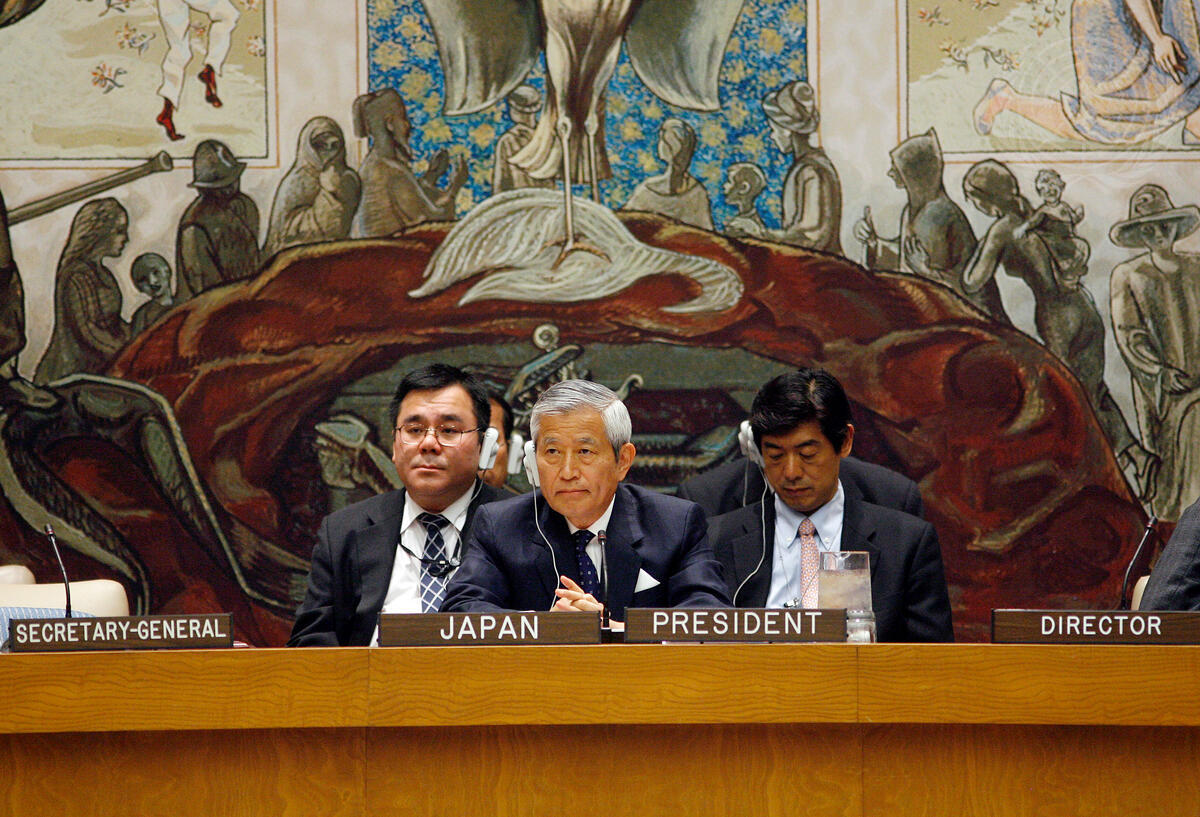 Yukio Takasu, Permanent Representative of Japan to the United Nations and President of the Security Council for April, convenes a Security Council meeting on the situation in Iraq.