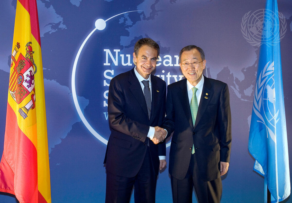 Secretary-General Ban Ki-moon (right) meets with José Luis Rodríguez Zapatero, Prime Minister of Spain, at the Walter E. Washington Convention Center, venue of the Nuclear Security Summit, in Washington D.C.