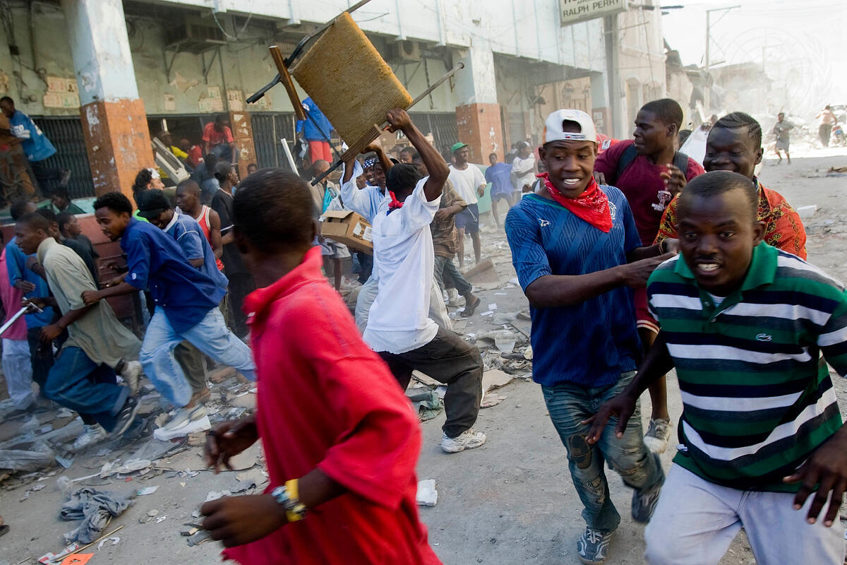 Security Guards Go After Looters in Downtown Port-au-Prince