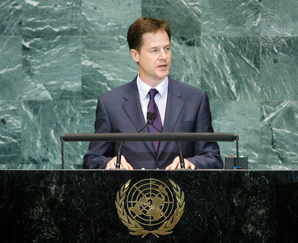 Nick Clegg, Deputy Prime Minister of the United Kingdom, addresses the UN Summit on the Millennium Development Goals (MDGs). Convened by the General Assembly, the Summit is aimed at spurring action towards achieving internationally agreed goals to reduce hunger, poverty and disease.