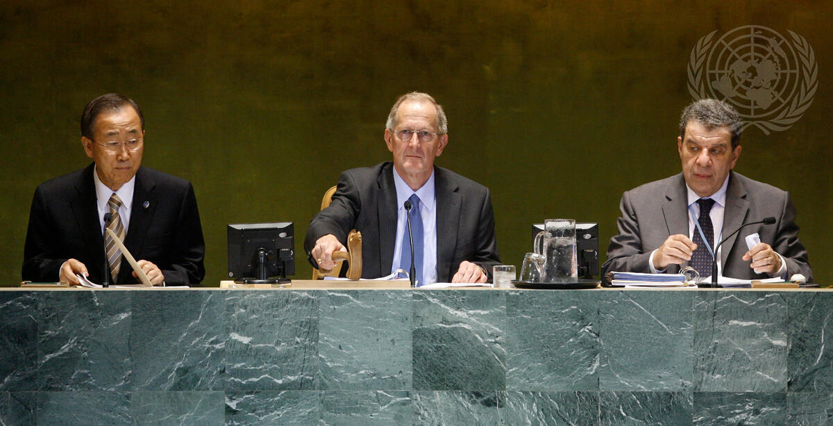 Joseph Deiss (centre), President of the sixty-fifth session of the General Assembly, opens the general debate of the Assembly's current session. With him are Secretary-General Ban Ki-moon (left) and Shaaban M. Shaaban, Under-Secretary-General for General Assembly and Conference Management.