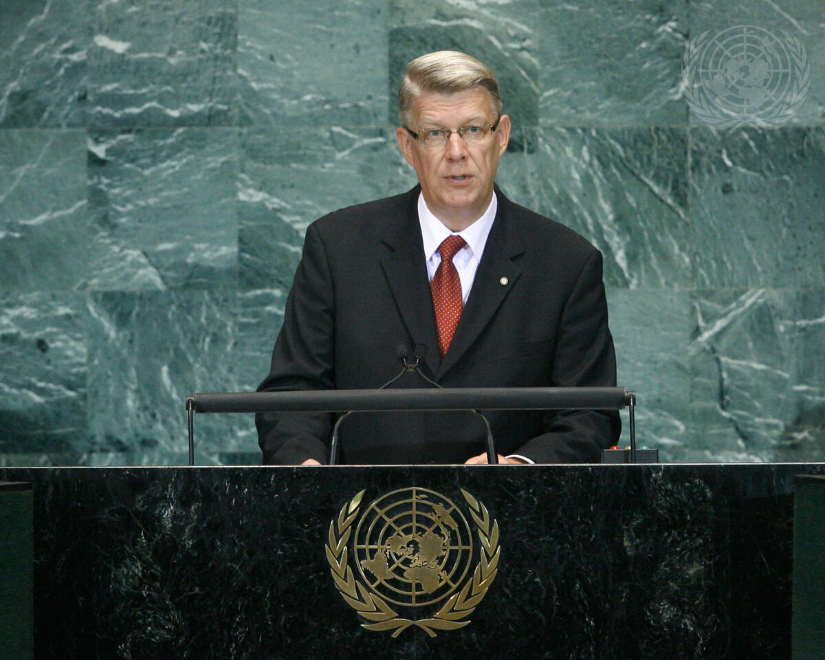 Valdis Zatlers, President of the Republic of Latvia, addresses the UN Summit on the Millennium Development Goals (MDGs). Convened by the General Assembly, the Summit is aimed at spurring action towards achieving internationally agreed goals to reduce hunger, poverty and disease.