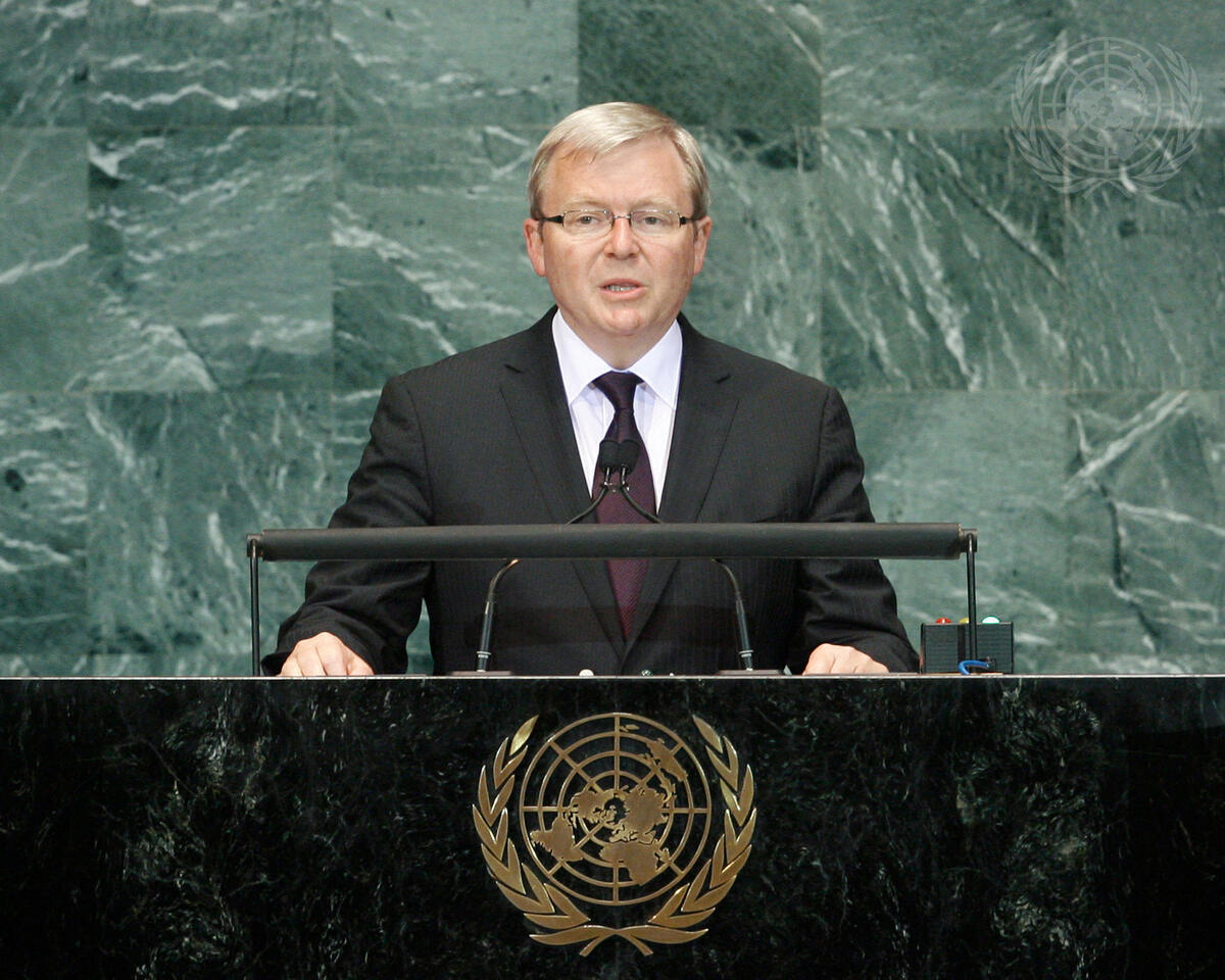 Kevin Rudd, Minister for Foreign Affairs of Australia, addresses the UN Summit on the Millennium Development Goals (MDGs). Convened by the General Assembly, the Summit is aimed at spurring action towards achieving internationally agreed goals to reduce hunger, poverty and disease.