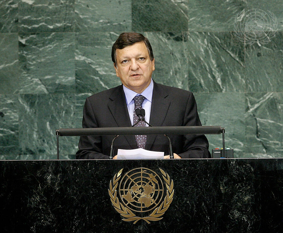 Speaking for the European Union, José Manuel Barroso, President of the European Commission, addresses the UN Summit on the Millennium Development Goals (MDGs). Convened by the General Assembly, the Summit is aimed at spurring action towards achieving internationally agreed goals to reduce hunger, poverty and disease.