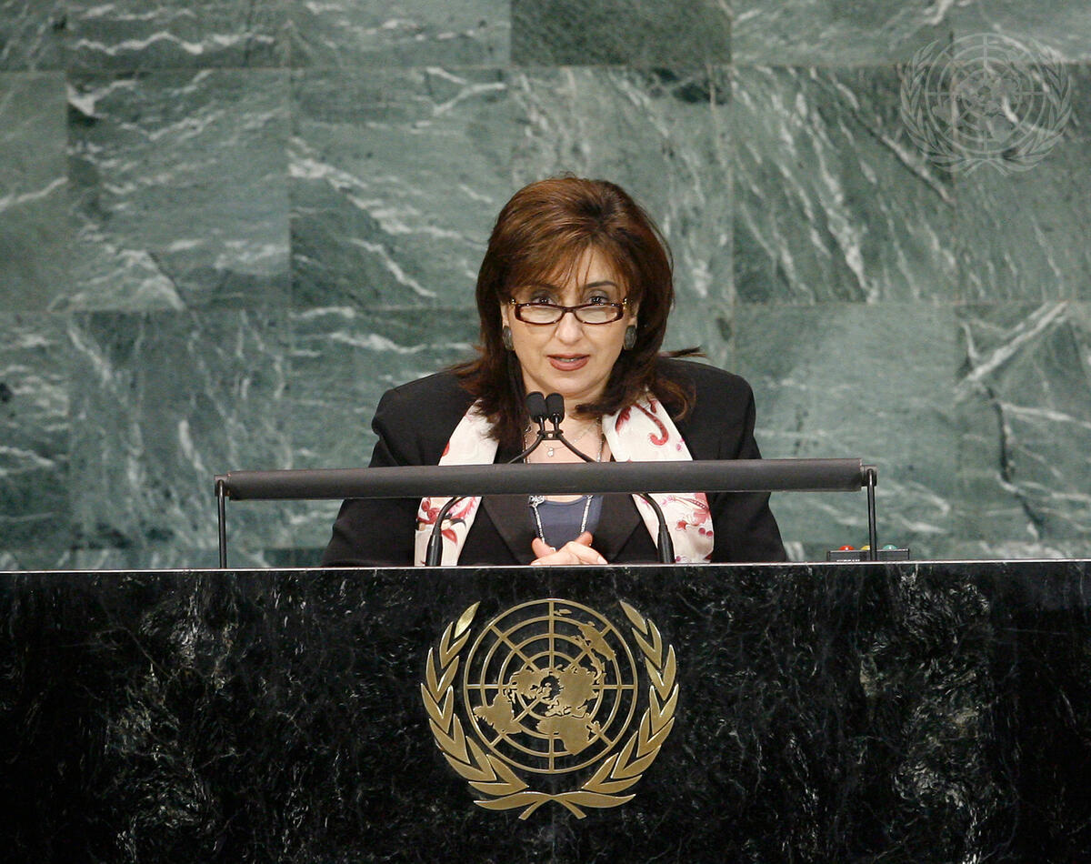 Bahiya Al Hariri, Assistant Secretary-General of the League of Arab States, addresses the UN Summit on the Millennium Development Goals (MDGs). Convened by the General Assembly, the Summit is aimed at spurring action towards achieving internationally agreed goals to reduce hunger, poverty and disease.
