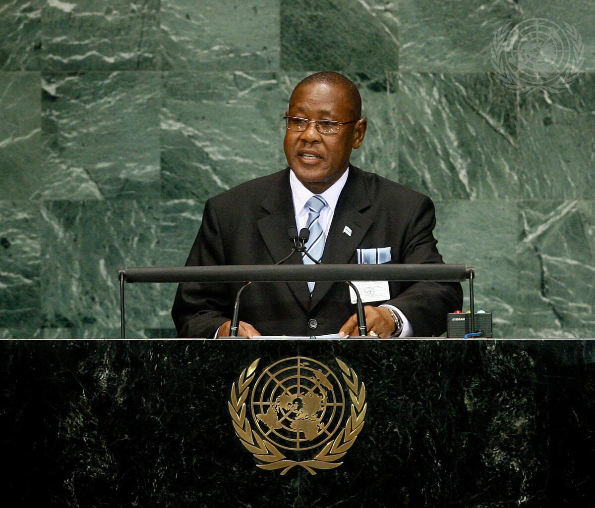 Mompati Merafhe, Vice-President of Botswana, addresses the UN Summit on the Millennium Development Goals (MDGs). Convened by the General Assembly, the Summit is aimed at spurring action towards achieving internationally agreed goals to reduce hunger, poverty and disease.