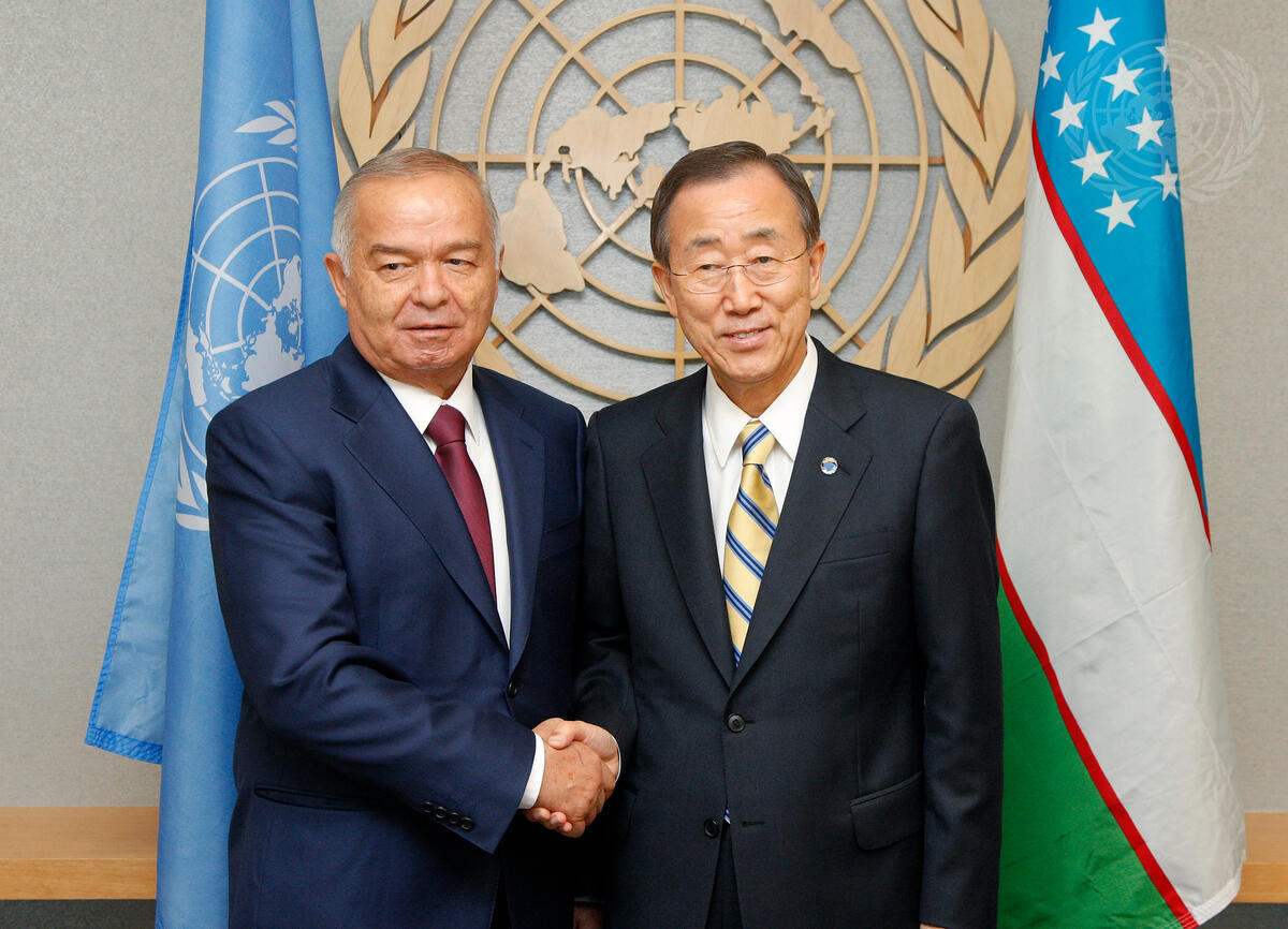 Secretary-General Ban Ki-moon (right) meets with Islam Karimov, President of the Republic of Uzbekistan.