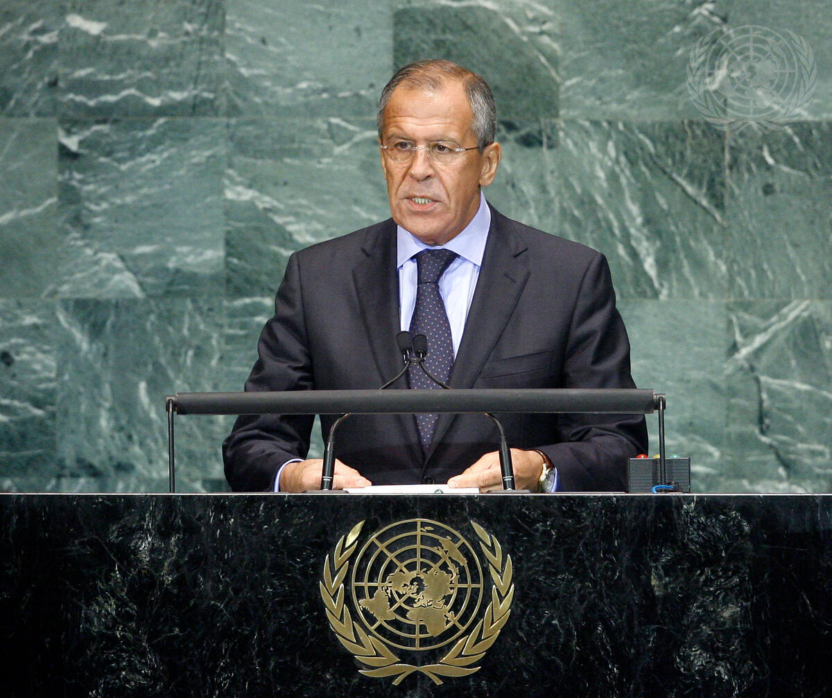 Sergey Lavrov, Minister for Foreign Affairs of the Russian Federation, addresses the UN Summit on the Millennium Development Goals (MDGs). Convened by the General Assembly, the Summit is aimed at spurring action towards achieving internationally agreed goals to reduce hunger, poverty and disease.