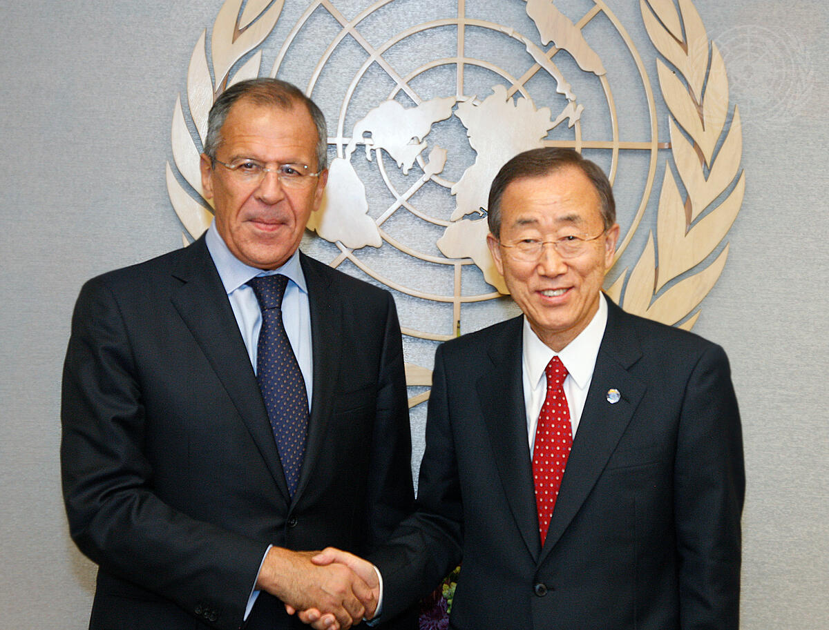 Secretary-General Ban Ki-moon (right) meets with Sergey V. Lavrov, Minister for Foreign Affairs of the Russian Federation.