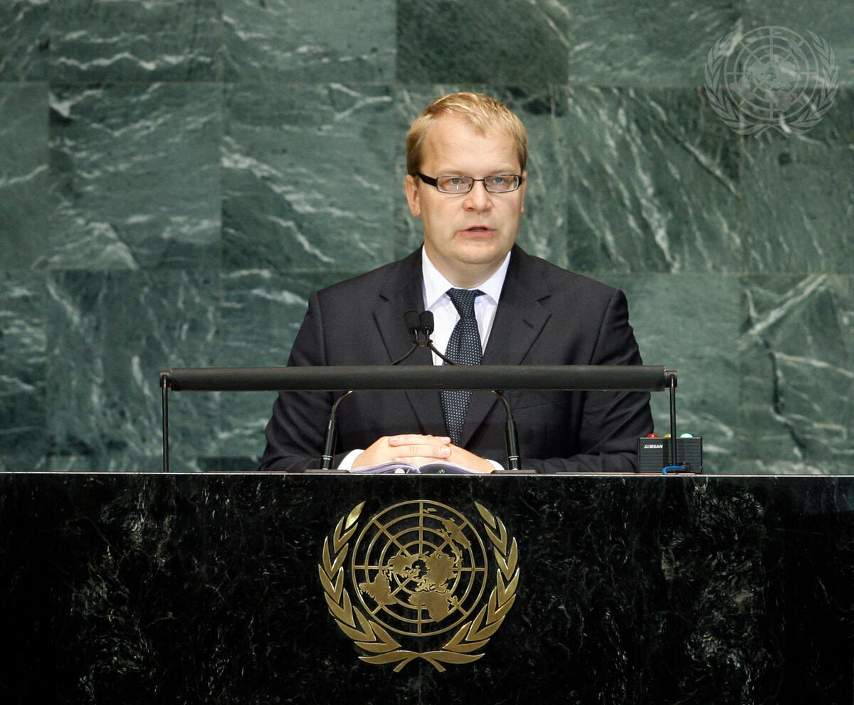 Urmas Paet, Minister for Foreign Affairs of the Republic of Estonia, addresses the UN Summit on the Millennium Development Goals (MDGs). Convened by the General Assembly, the Summit is aimed at spurring action towards achieving internationally agreed goals to reduce hunger, poverty and disease.