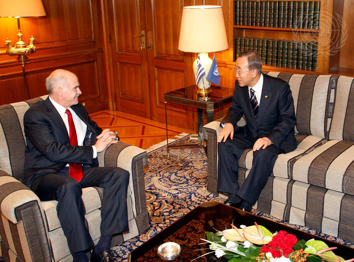 Secretary-General Ban Ki-moon (right) meets with George A. Papandreou, Prime Minister of Greece.