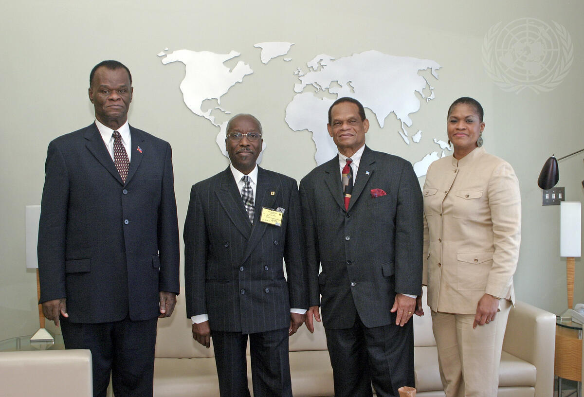 Julian R. Hunte ( third from left), President of the 58th session of the General Assembly meets with Boniface Alexander (extreme left), President ad interim of Haiti.